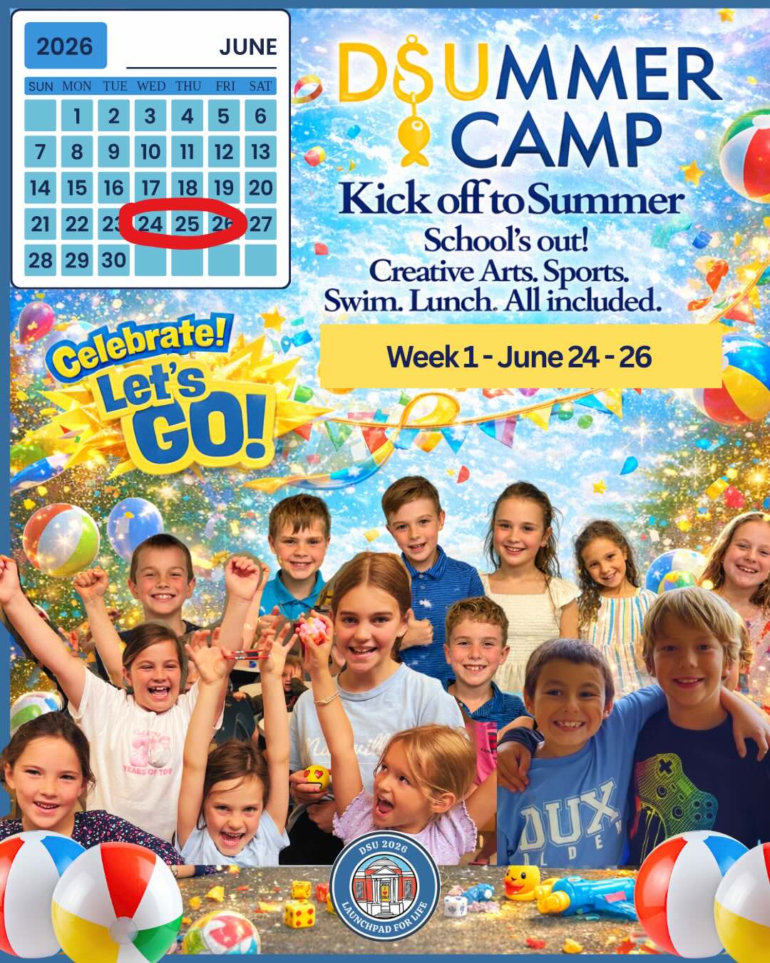 DSU Summer Camp: Week One June 24, 25, and 26 (W, Th, F) from 9am to 2pm. It’s time to unplug, explore, and discover the magic of summer!